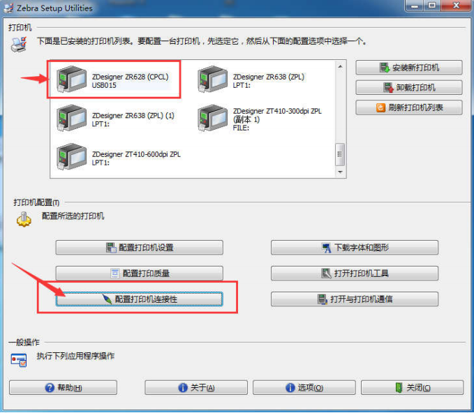1、 將打印機(jī)用 USB 線連接電腦,之后打開 Zebra Setup Utilities,選中對應(yīng)的打印機(jī)驅(qū)動-點擊配置打印機(jī)連接;