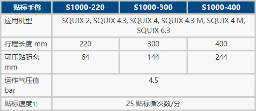使用壽命、預(yù)先剝離功能、氣壓計(jì)、穩(wěn)定度和支撐氣流等說明請(qǐng)參照貼標(biāo)手臂 S1000。