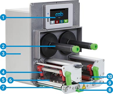 標(biāo)簽剝離之后,下一張標(biāo)簽會退回打印頭后方。借此確保標(biāo)簽前緣仍可打印并防止殘膠因長時間等待而溢出。使用敏感材質(zhì)時,打印頭可抬起以避免碳帶起皺折。