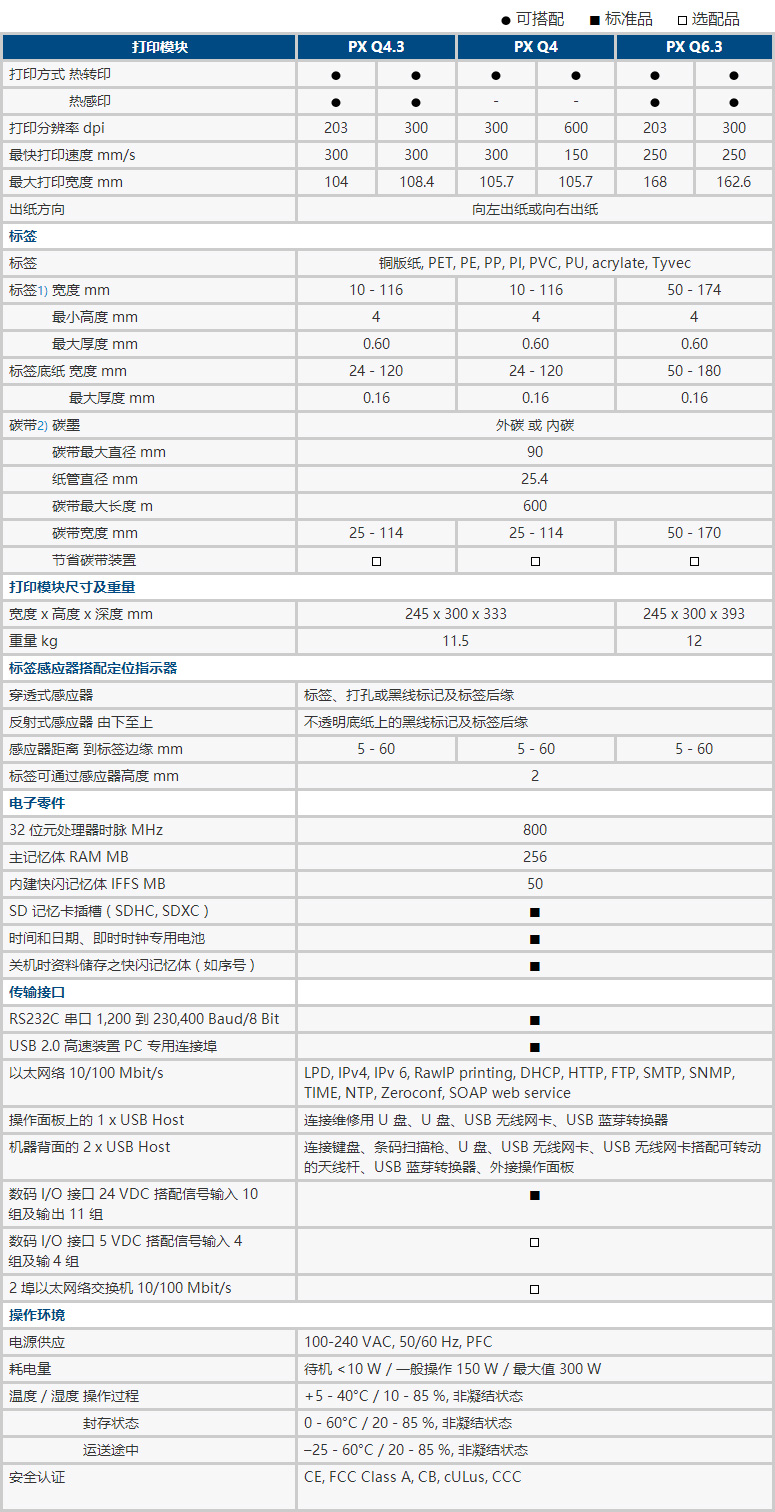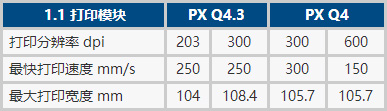 所有打印模塊皆提供向左及向右出紙的版本。使用 PX Q4 時可選用 300 及 600 dpi 的打印分辨率。PX Q4.3 及 PX Q6.3 提供了 203 及 300 dpi 的選擇。