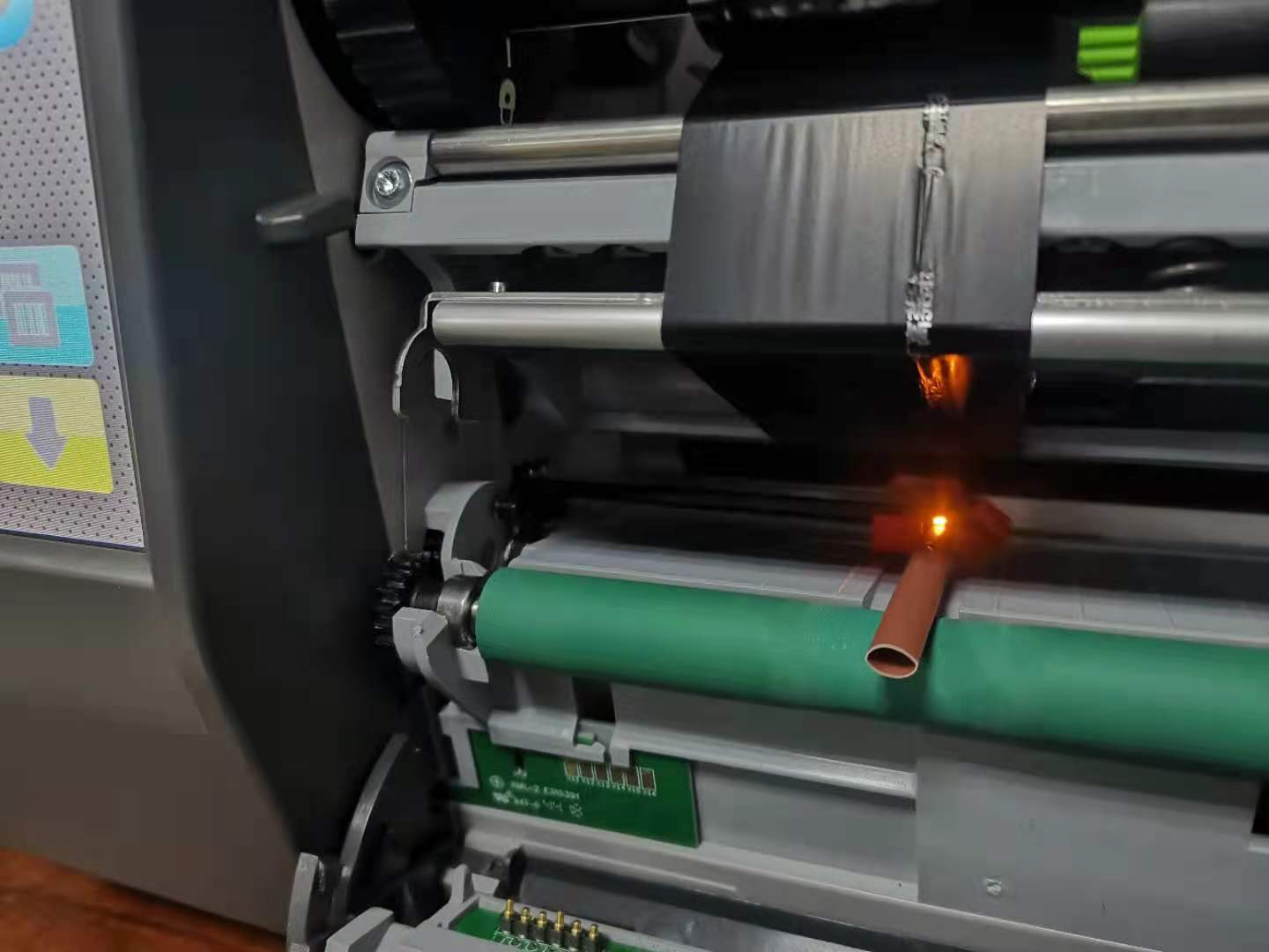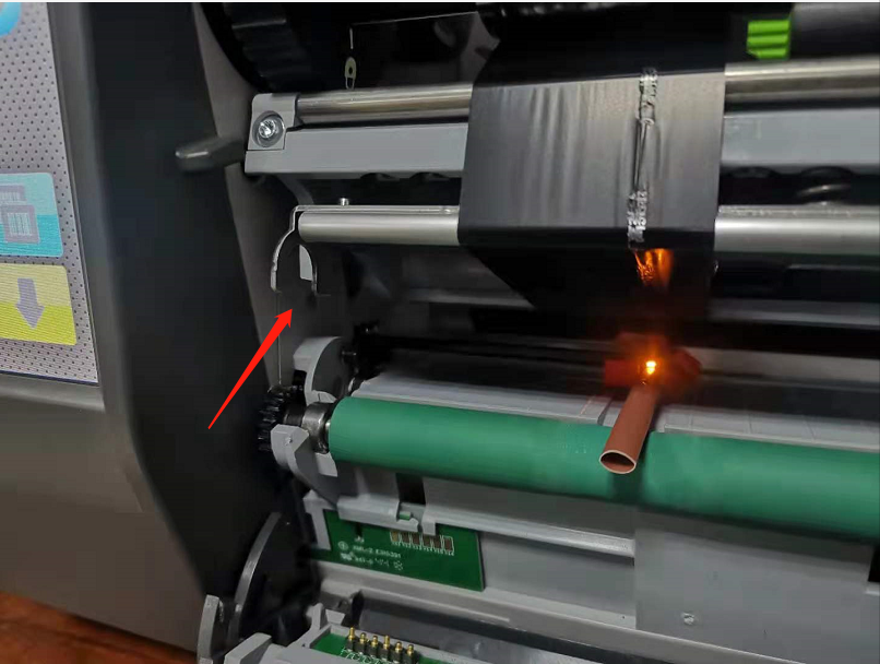 技術(shù)員:增加壓力就能打印清晰了,麻煩取下切刀,抬起打印頭,然后拍照打印機(jī)正面圖。