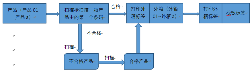 (5)如特殊情況,無需等待外箱標簽數(shù)量為b時,可強制打印棧板標簽,系統(tǒng)記錄。——例如上午生產(chǎn)外箱B1(打印),下午生產(chǎn)外箱B2,要求可以合并棧板(B1+B2)后重新覆蓋打印標簽,系統(tǒng)記錄