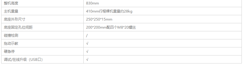 支持拖動(dòng)示教、硬急停、調(diào)試/在線升級(jí)(USB口)